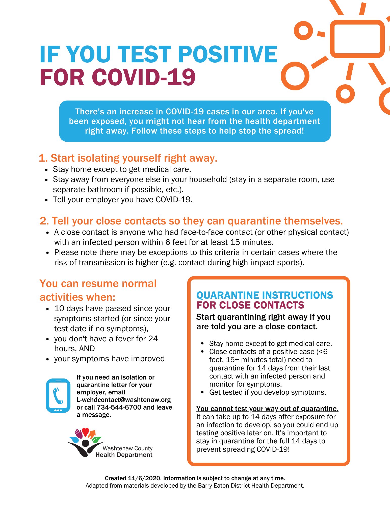 Washtenaw County Health Department On Twitter We Need Everyone S Help To Follow Isolation And Quarantine Precautions If You Test Positive For Covid 19 Or Have Been Exposed Follow These Guidelines To Help